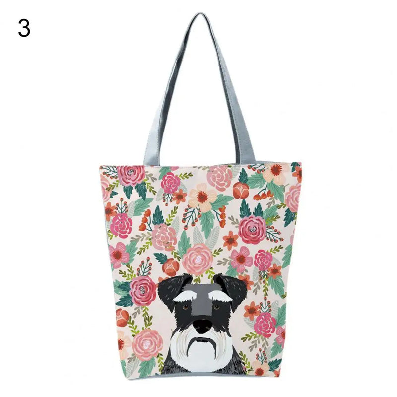 Puppy Print Shoulder Bag Smooth Zipper Tote Bag