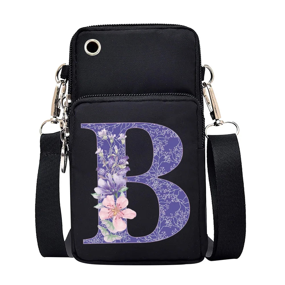 Purple Flower Print CrossBody Bag Waterproof Phone Shoulder Bag