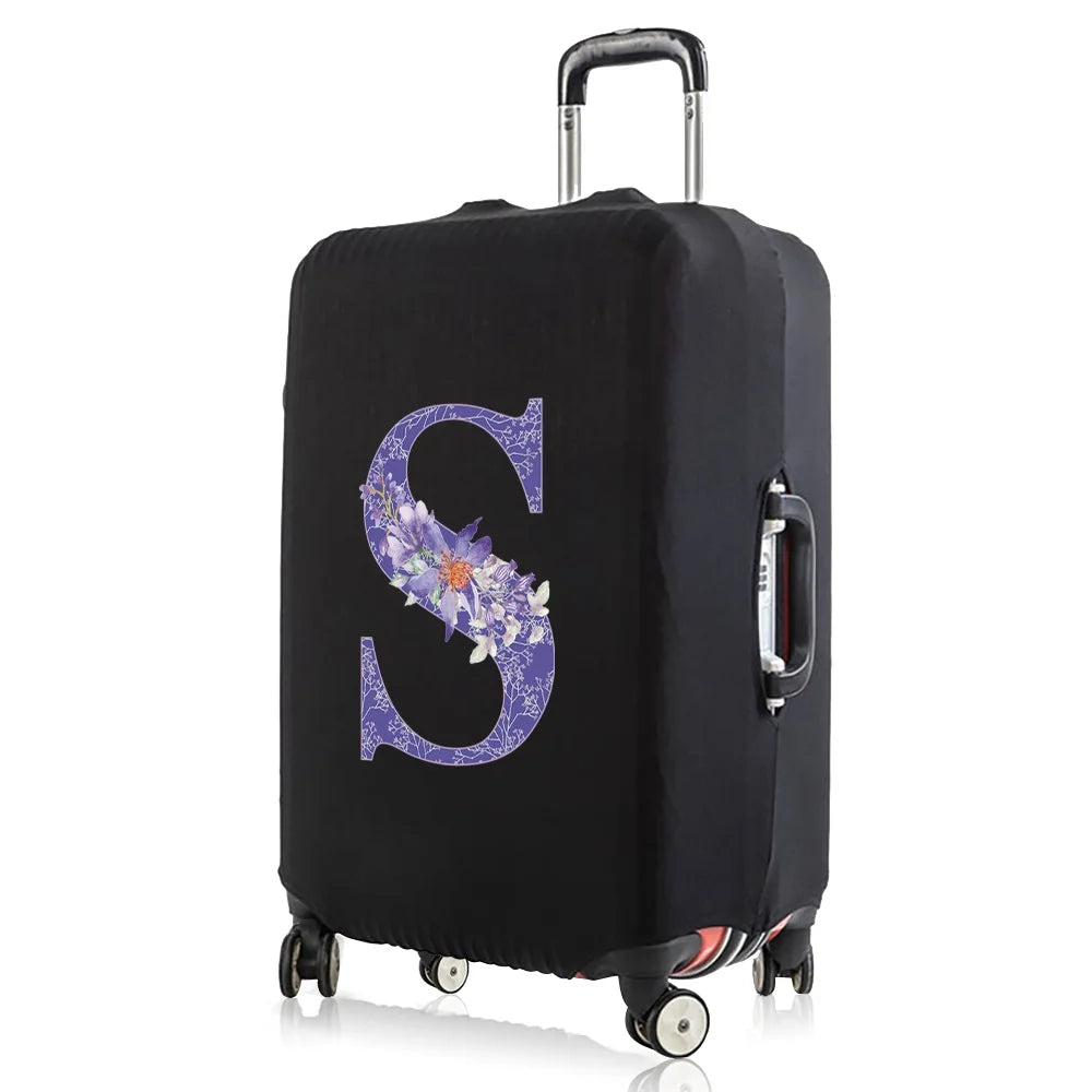 Protect your luggage in style with this purple flower series luggage cover. Made of elastic material, this cover fits 18-28 inch suitcases and features 26 letters design. Ideal for travel and adding a personalized touch to your luggage.