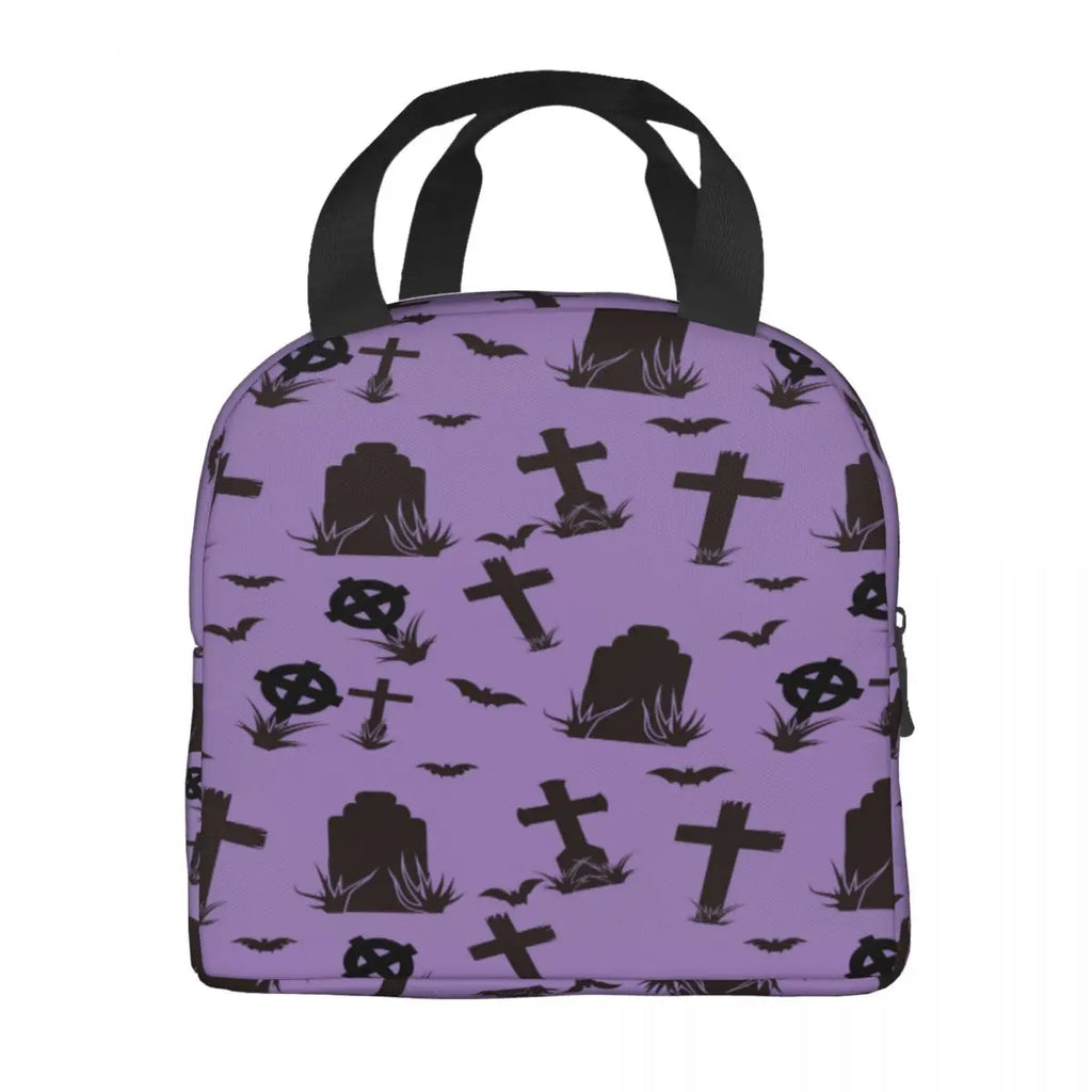 Purple Halloween Pattern Lunch Bag Insulated Thermal Cooler Bento Lunch Box Tote