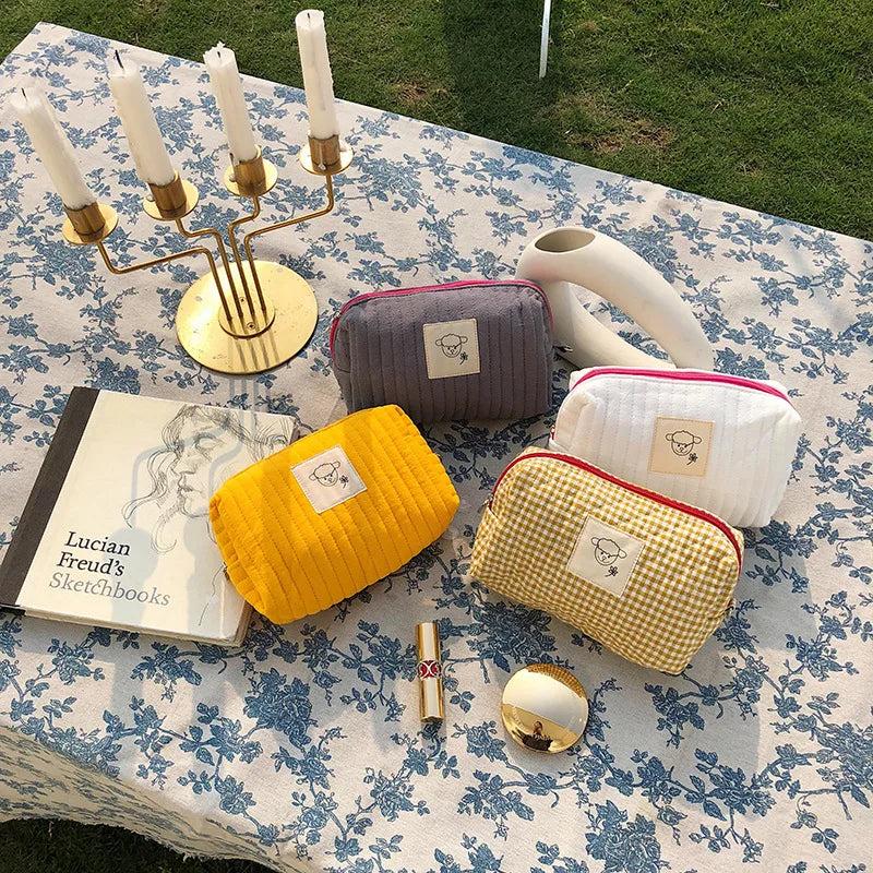 Quilted Cosmetic Bag Portable Makeup Toiletry Bag