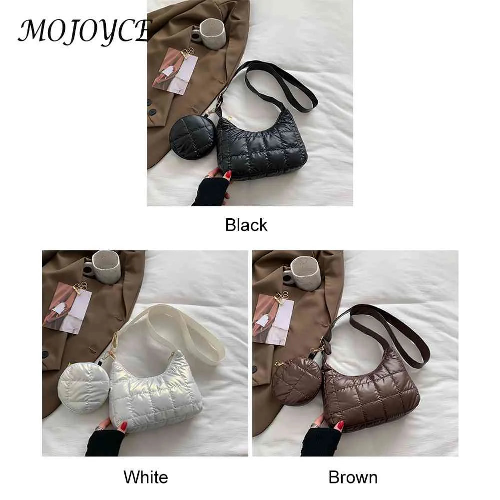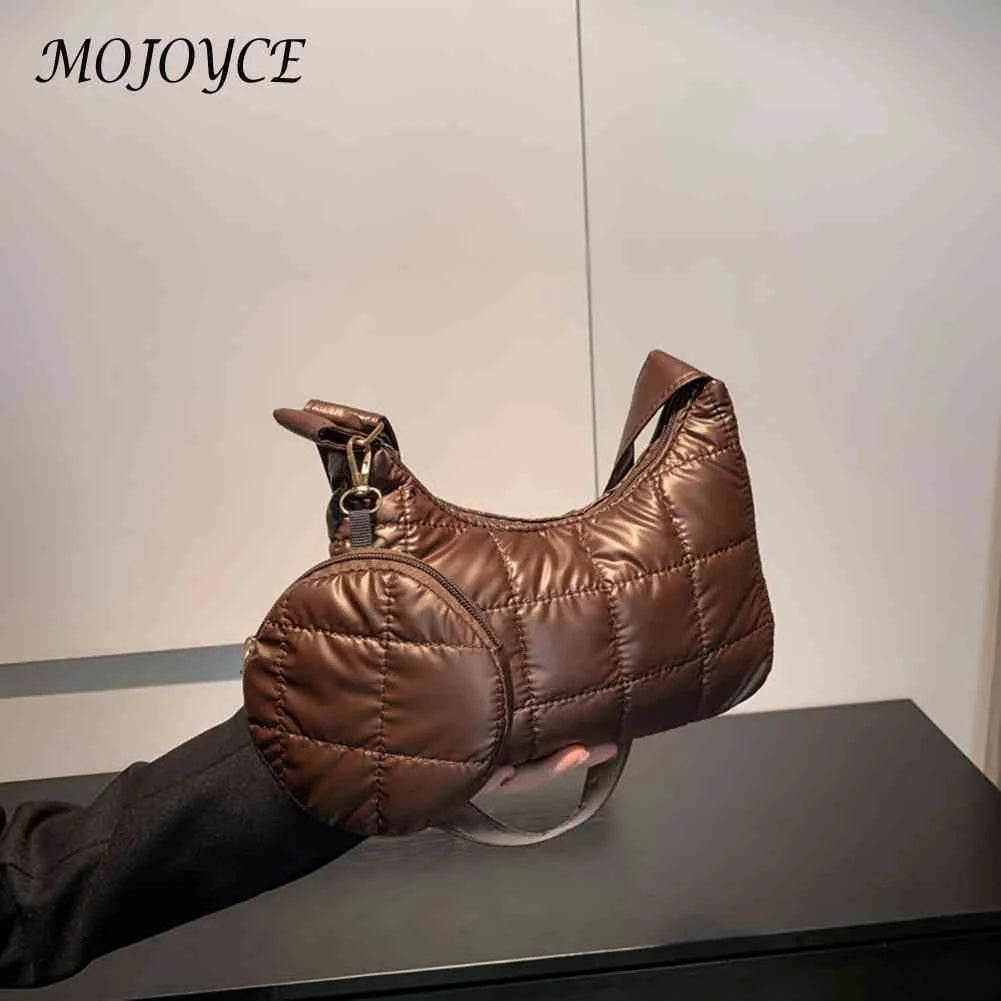 Description:Stay cozy and stylish with this quilted cotton-padded bag. This bag features a soft adjustable design, perfect for commuting in the colder months. It comes with a small round purse for your essentials.Features: Quilted cotton-padded bag for autumn and winter Soft and adjustable for comfortable commuting Solid diamonds pattern adds...