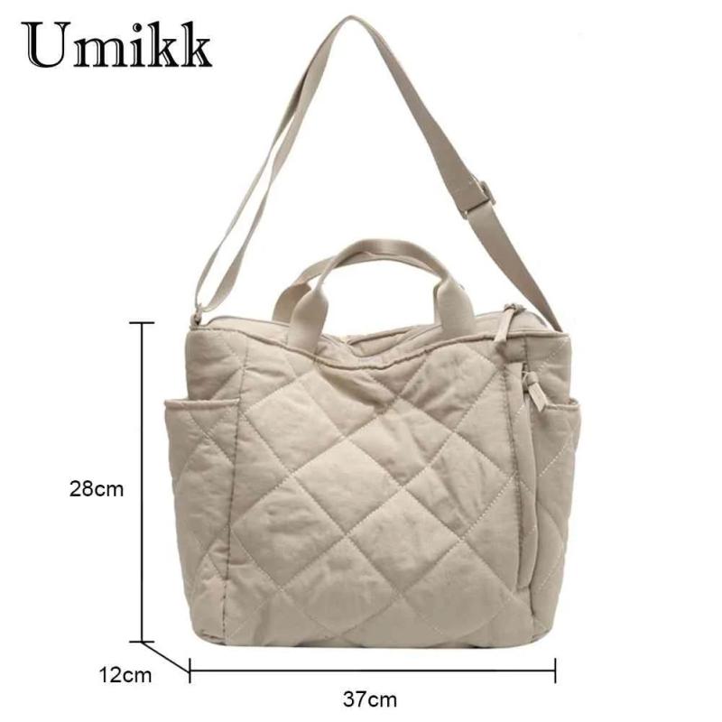 Stay stylish and organized with this autumn winter shoulder bag. The rhombic lattice design adds a touch of elegance, while the large capacity and quilted cotton-padded material keep your essentials safe and secure. Perfect for street shopping or casual outings.