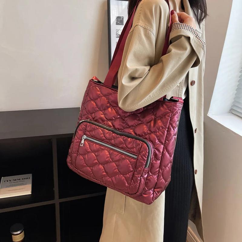 Quilted Messenger Bag Nylon Ladies Crossbody Bag Waterproof Soft Warm
