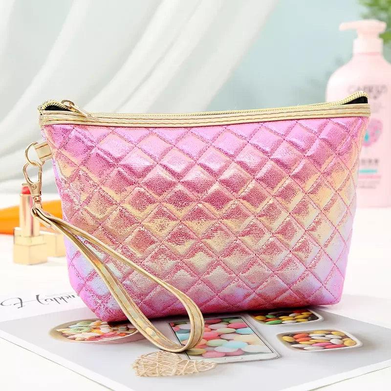 Stay organized while on the go with this stylish quilted PU cosmetic bag. The square plaid design and laser finish give it a trendy look. Perfect for storing your makeup essentials or toiletries when traveling.