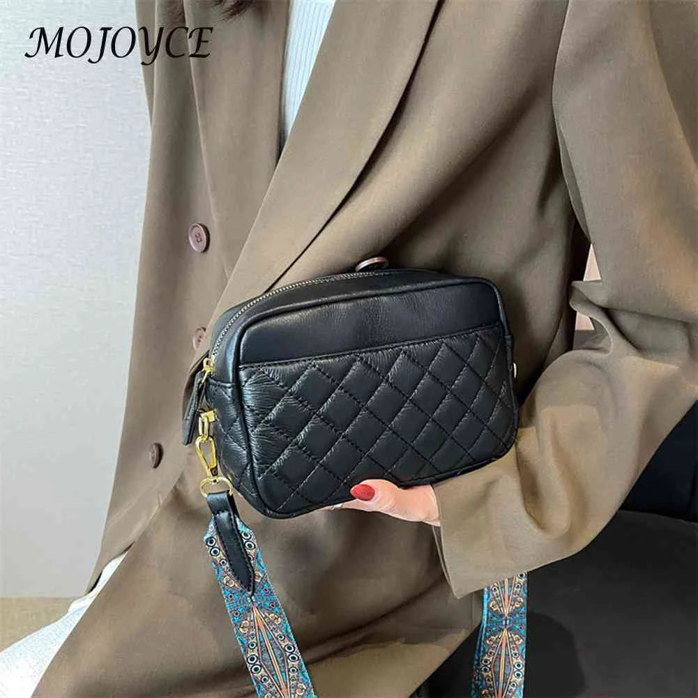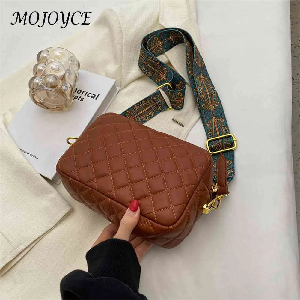 Quilted PU Leather Camera Shoulder Bag Prints Wide Strap Rhombus Pattern