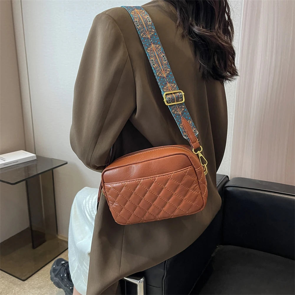 Quilted PU Leather Crossbody Sling Bag Prints Wide Strap Crossbody Bag