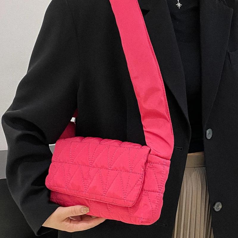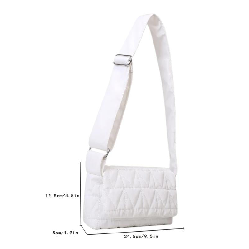 Stay stylish and organized with this quilted crossbody bag featuring a small square flap pocket and a wide cotton-padded strap. Perfect for travel or office use.