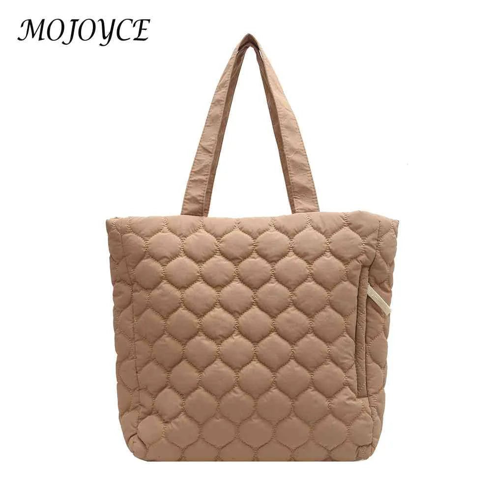 Quilted Shoulder Bag Large Capacity Winter Shopper Bag Cotton-Padded Nylon