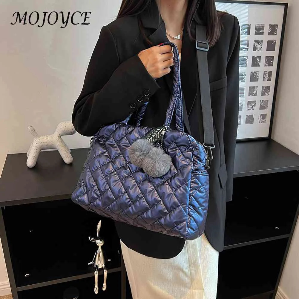 Quilted Shoulder Bag Pompom Pendant Large Capacity Crossbody Bag