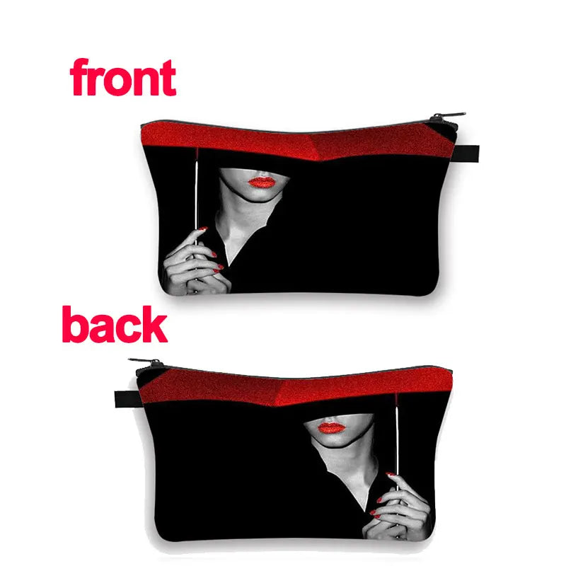Red&Black Rose Embroidery Cosmetic Case Woman travel Bag