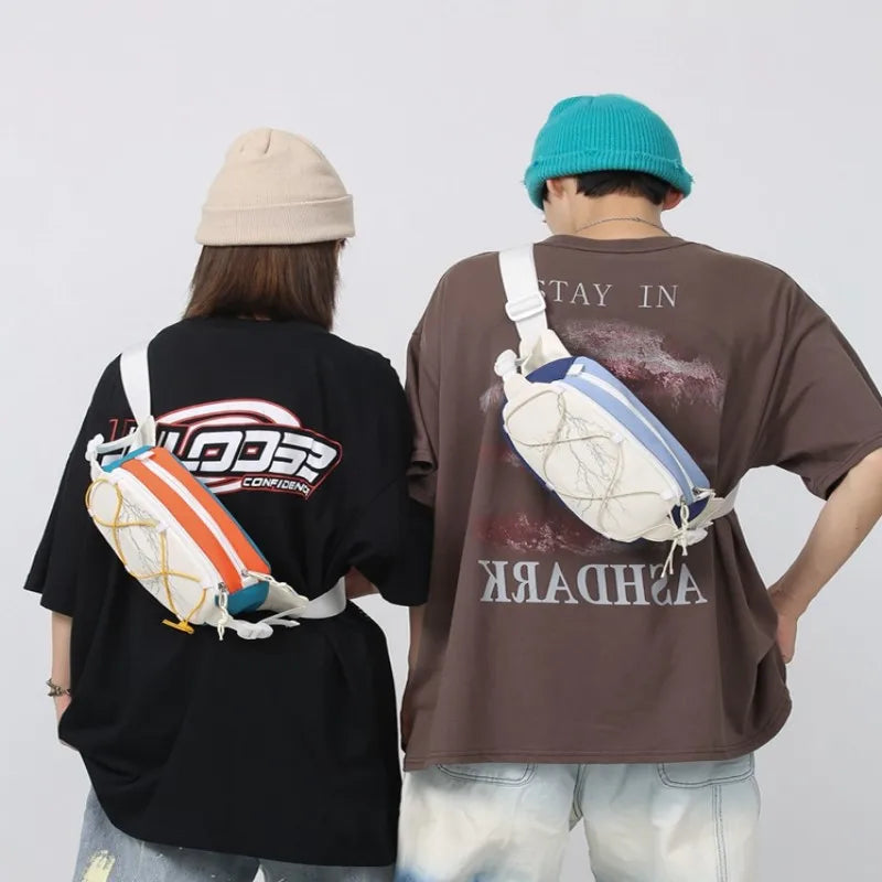 Stay stylish with this reflective Harajuku hip hop couple chest bag that features a unique one-shoulder design perfect for sports and outings.
