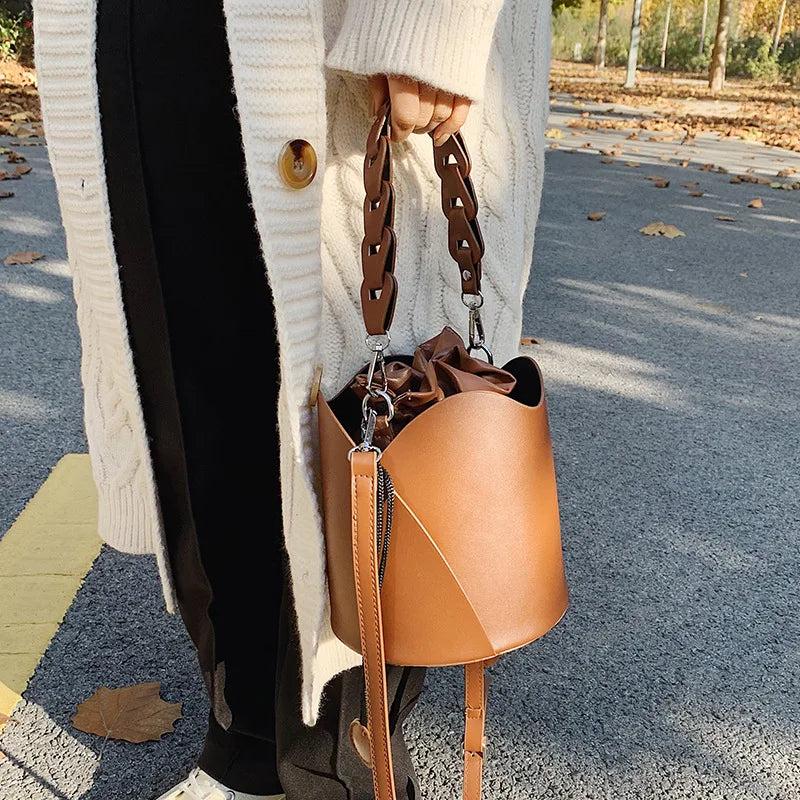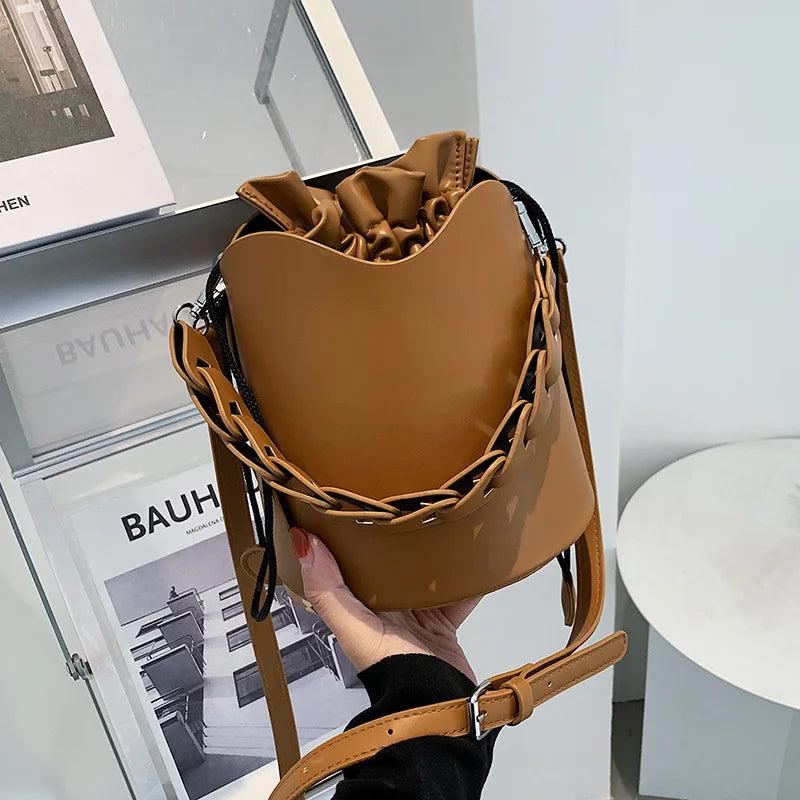 Retro Bucket Bag Ladies Shoulder Bag Drawstring Texture Messenger