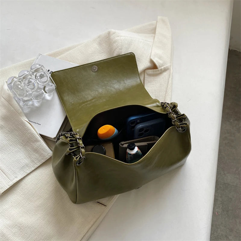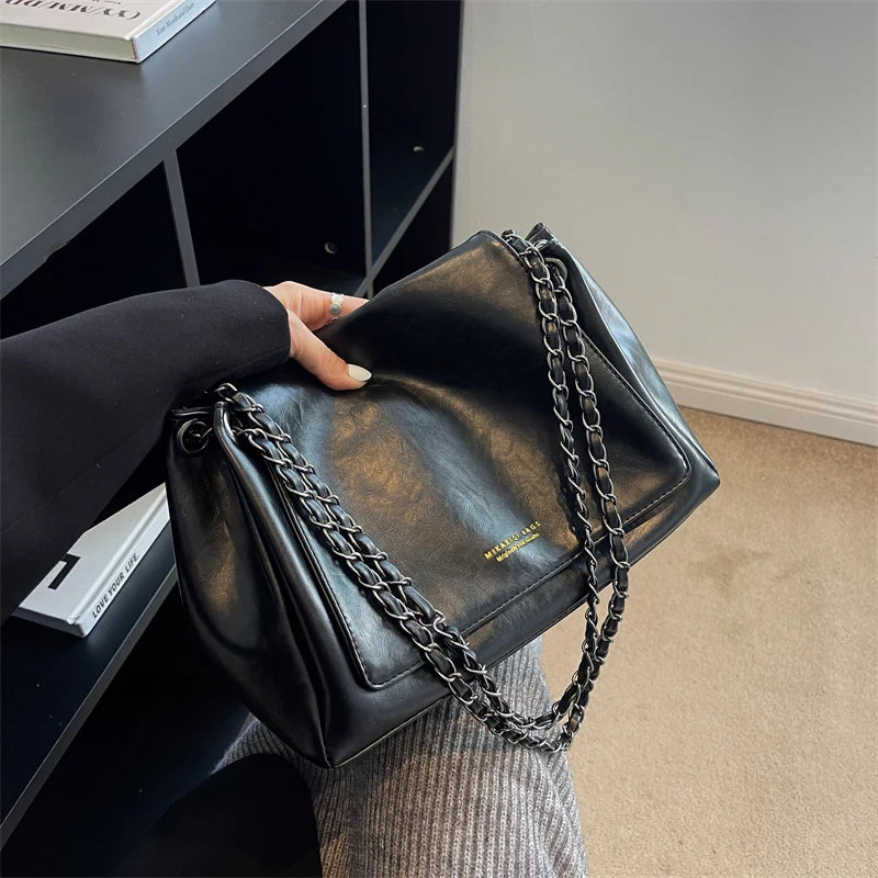 Retro Casual Shoulder Bag with Chain Large Capacity Messenger Bag