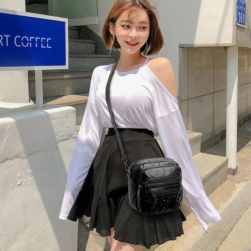 This stylish shoulder bag is made of soft PU leather, perfect for casual outings. It can hold your mobile phone and other essentials.