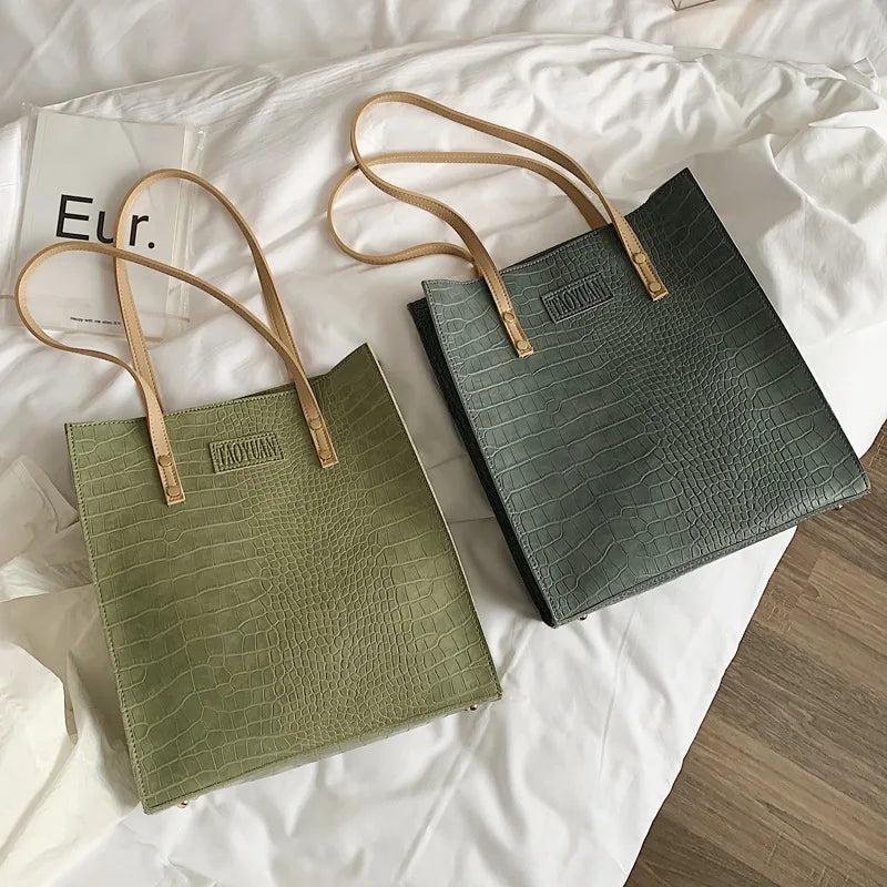 Stay stylish with this retro large-capacity bag featuring a crocodile pattern. Perfect for casual use, ideal for students.