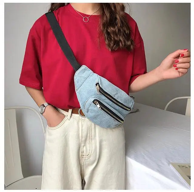 Retro Denim Belt Waist Pack Chest Bag Shoulder Messenger bag
