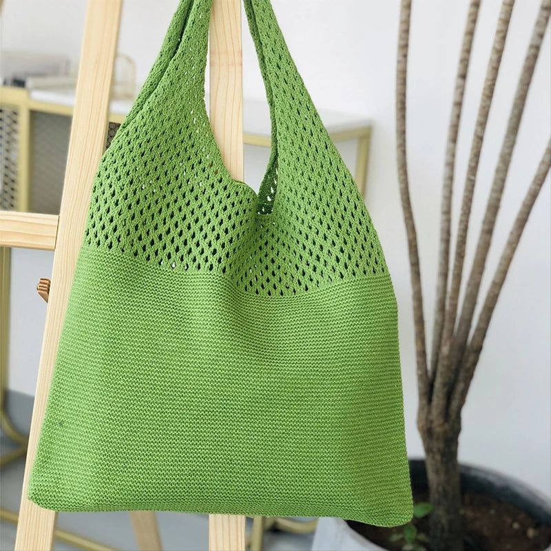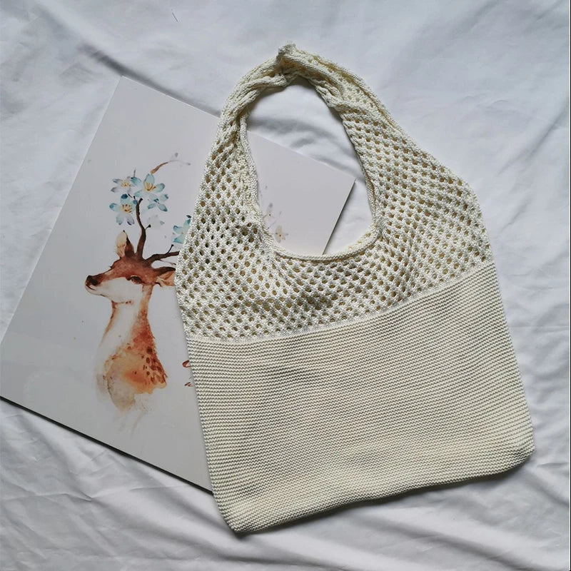 Retro Hollow Knit Single Shoulder Bag Female Vest Bag Wool Bag