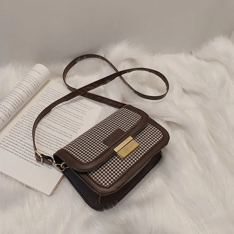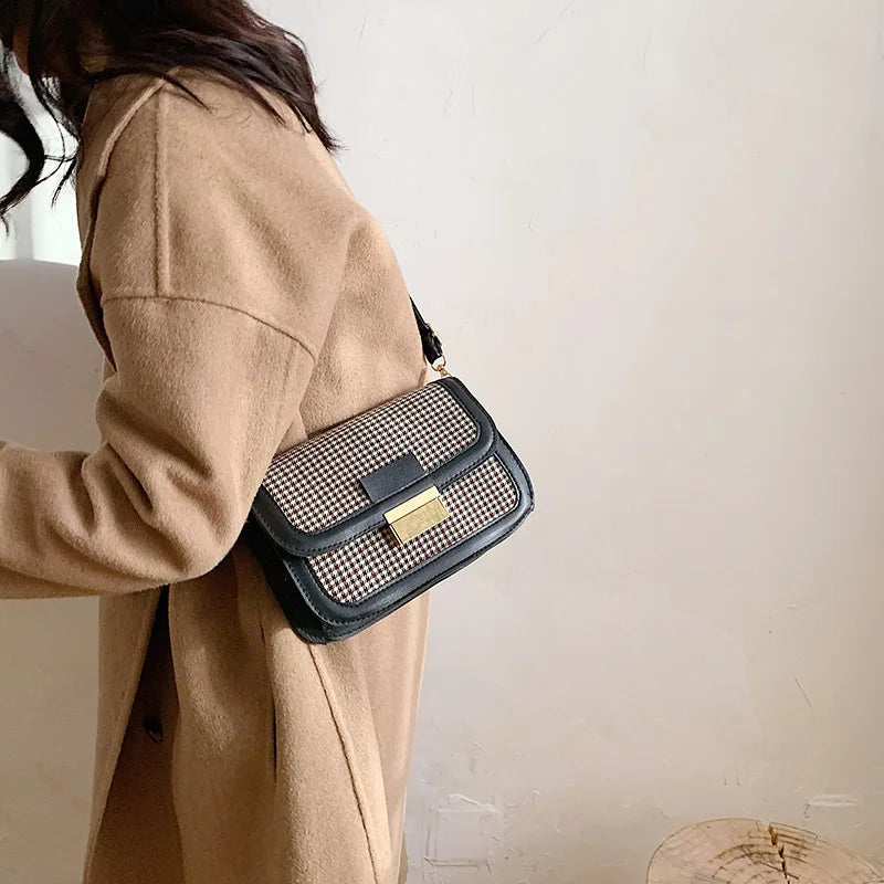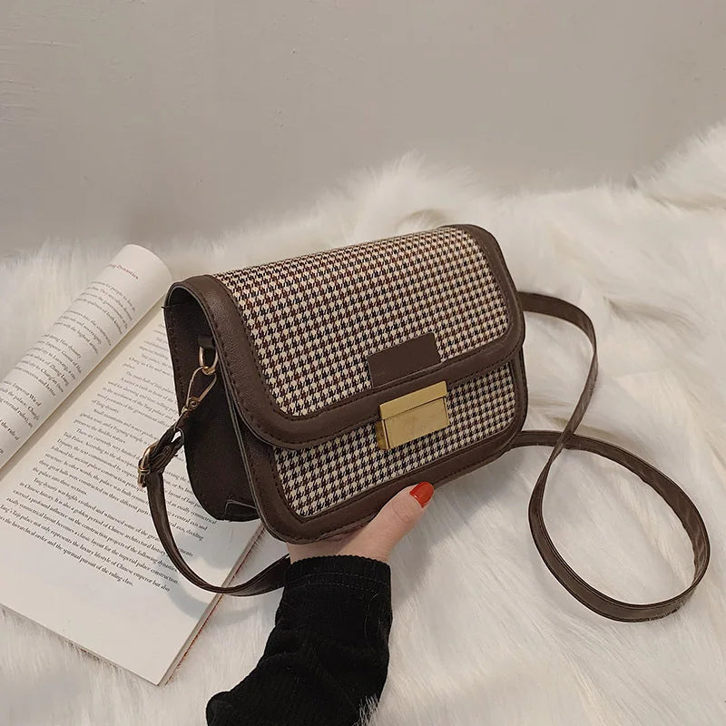Retro Houndstooth PU Leather Small Bag Female Single Shoulder Messenger