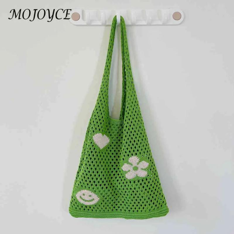 Retro Knitted Shoulder Bag Casual Beach Shopper Mesh