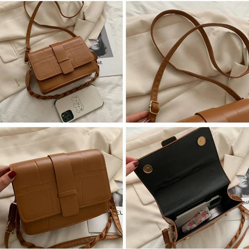 Retro Ladies PU Small Square Shoulder Bag Solid Casual Messenger Bags