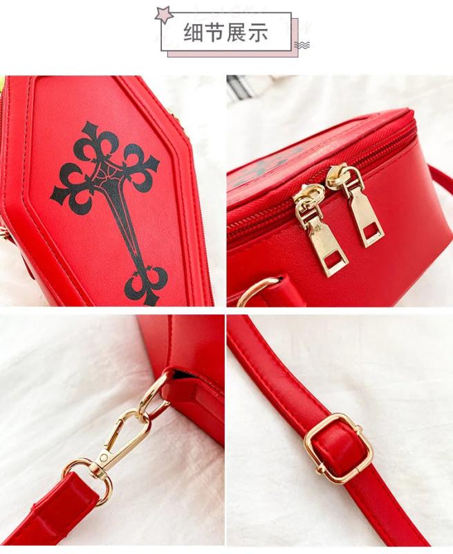 This hot-selling sling bag features a retro design with double zippers closure and is made of high-quality PU leather. Ideal for daily use, it's a small purse in a unique coffin shape.