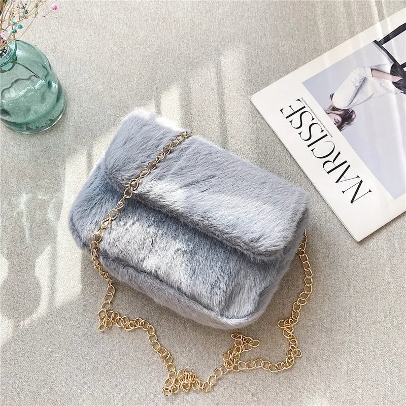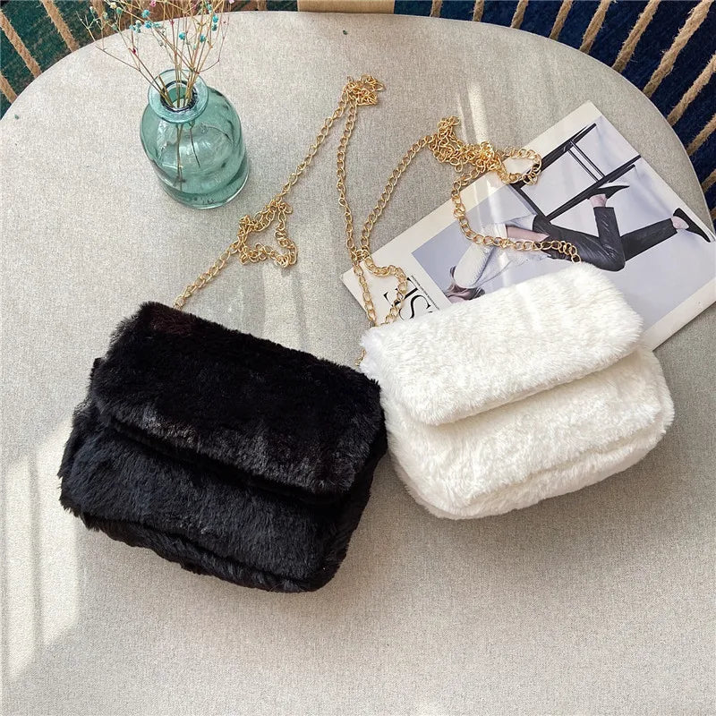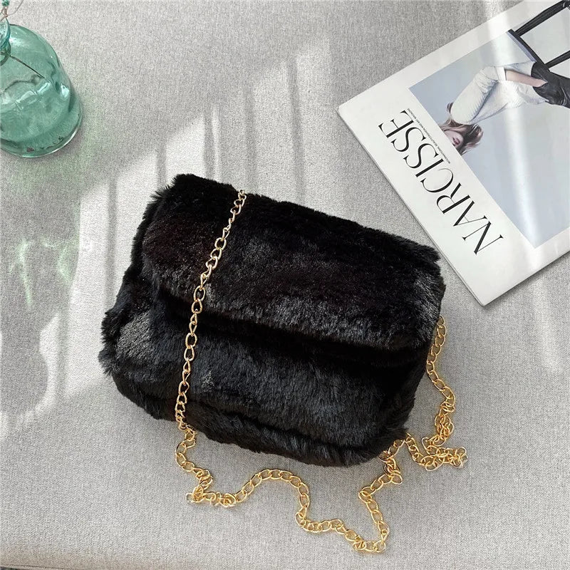 Retro Single PU Leather Shoulder Bag Messenger Bag Chain Lamb Wool Bag
