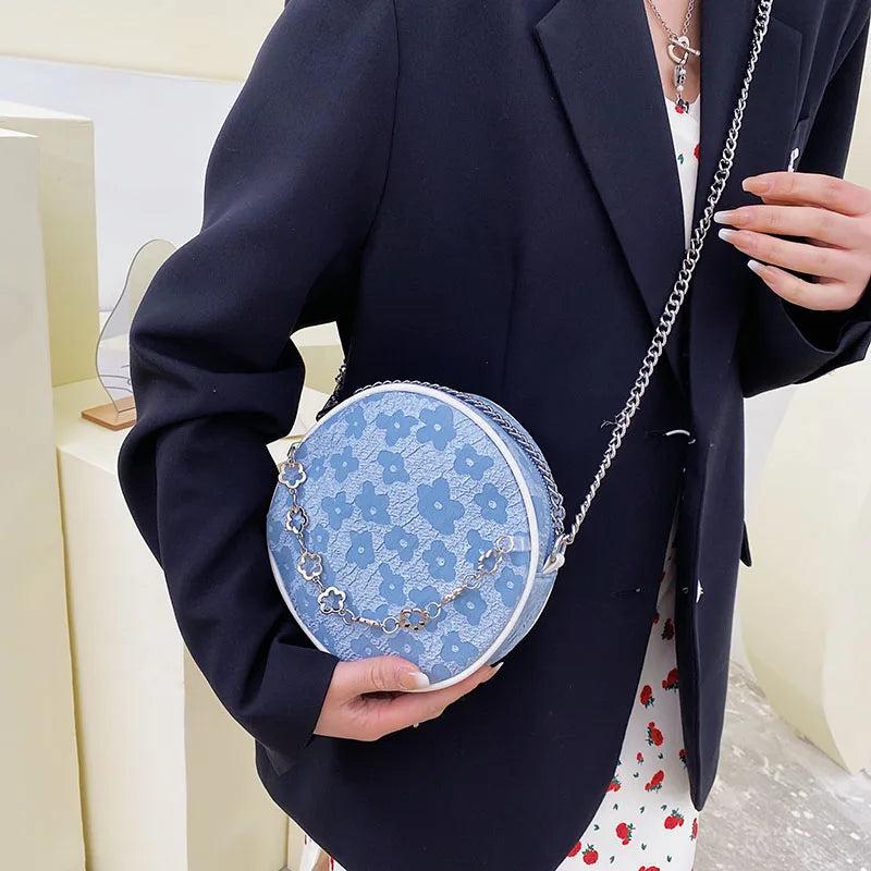 Retro Small Round Bag High Pu Leather Lady Messenger Bag