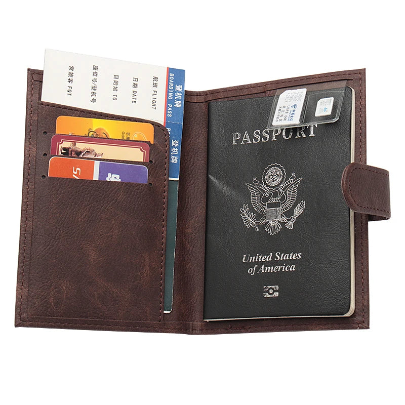 Keep your personal information safe with this retro style passport holder made of PU leather. Built-in RFID blocking technology to protect against unauthorized scanning.