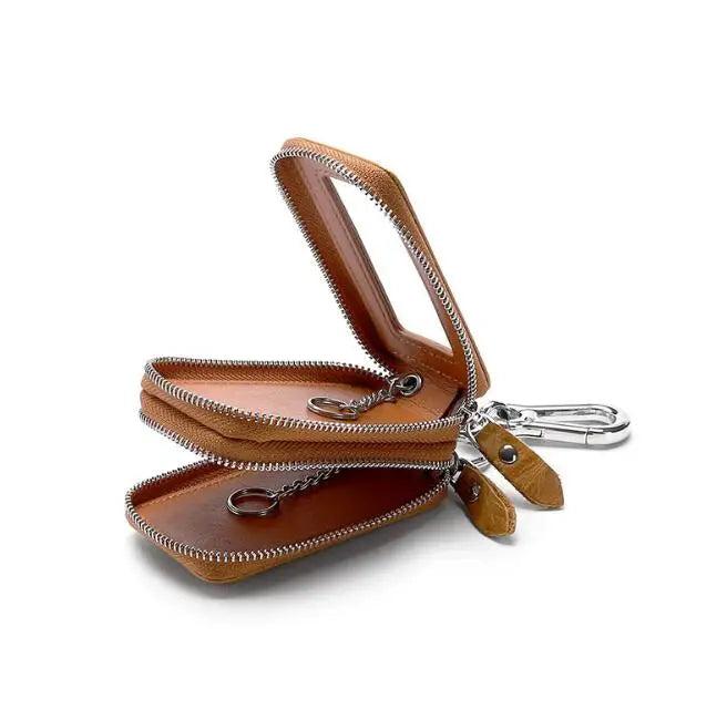 Keep your motor vehicle keys organized and secure with this stylish double-layer retro transparent key case. The first layer features leather for a classic touch, while the double zipper design adds functionality.