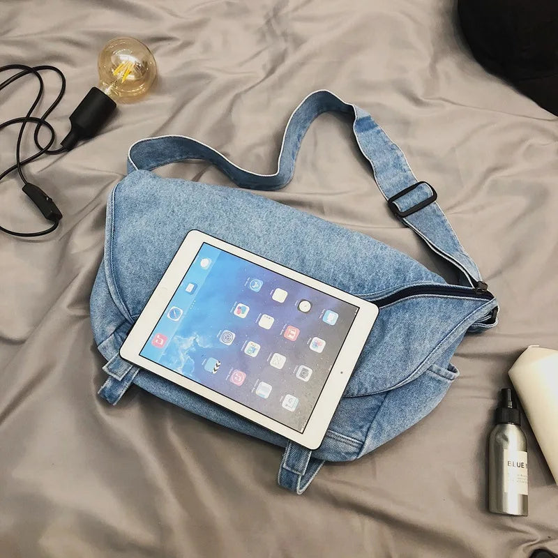 Retro Washed Denim Large Bag Casual Messenger Satchel