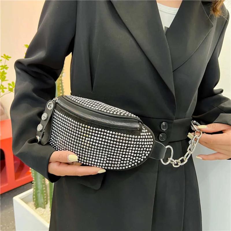 Rhinestone Waist Bag Diamond Fanny Pack Chain Belt Bags Bling Bum Bag
