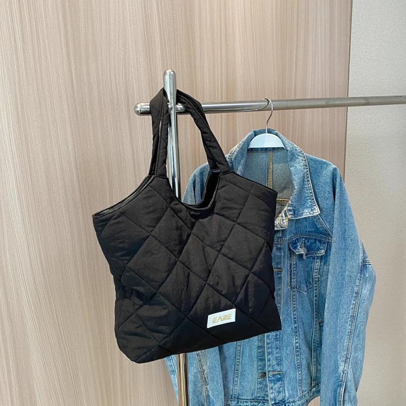 Rhombic Lattice Shoulder Bag Quilted Top-handle Bags Large Capacity Soft Casual
