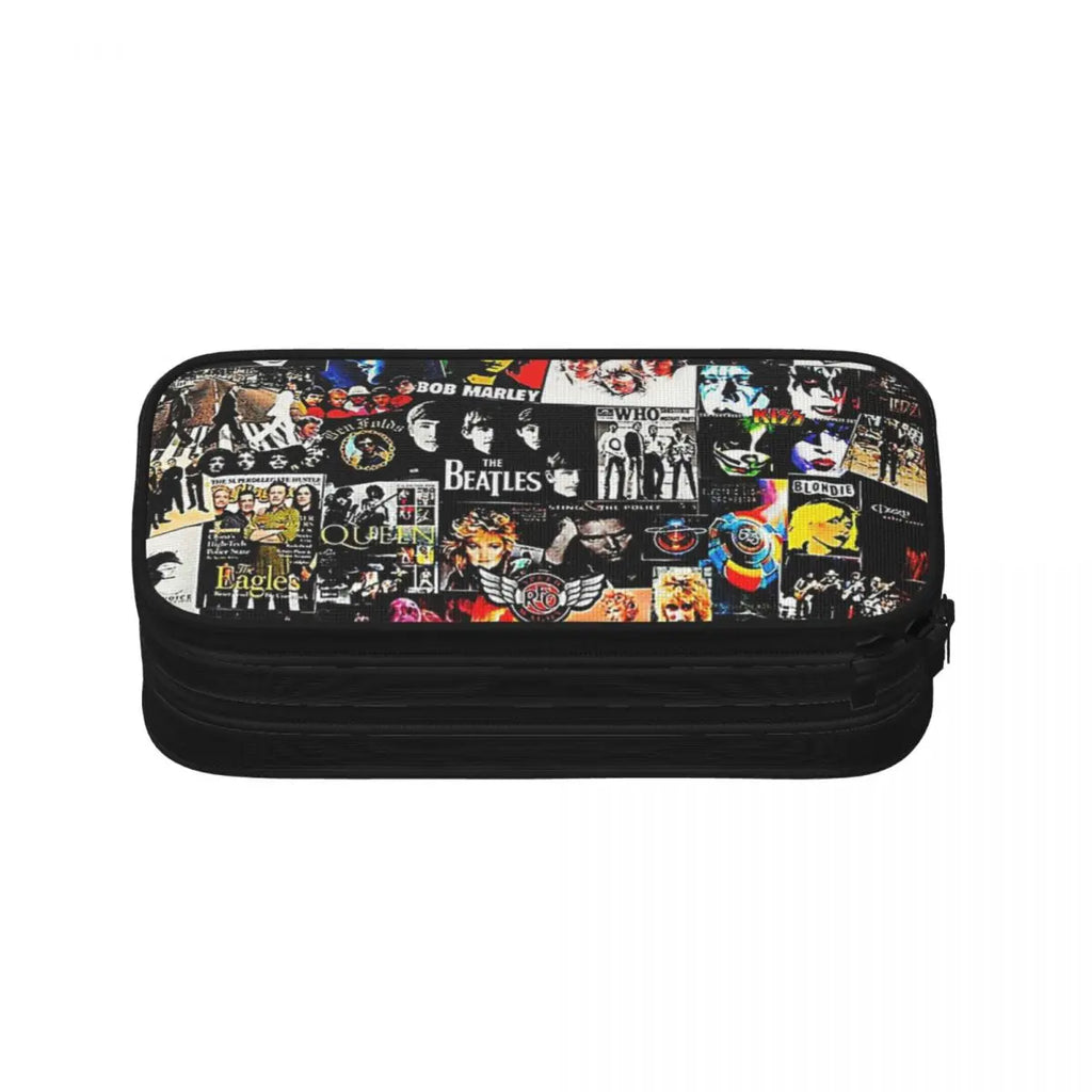 Rock Collage Pen Box Student School Anime Zipper Pen Bag
