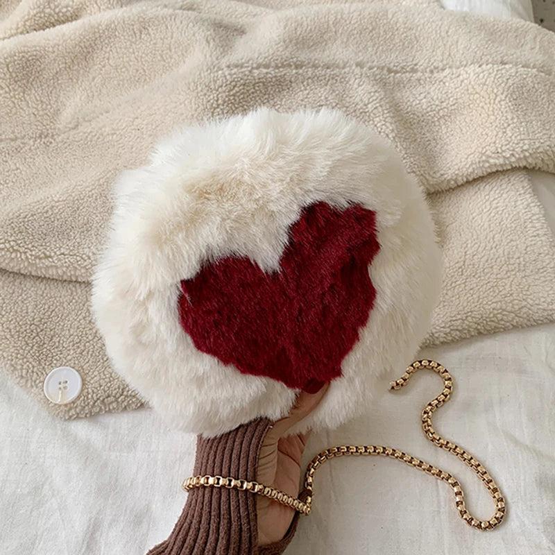 This round plush bag features a metal chain and a western love pattern design, perfect for casual outings. Can be worn as a one-shoulder or messenger bag.