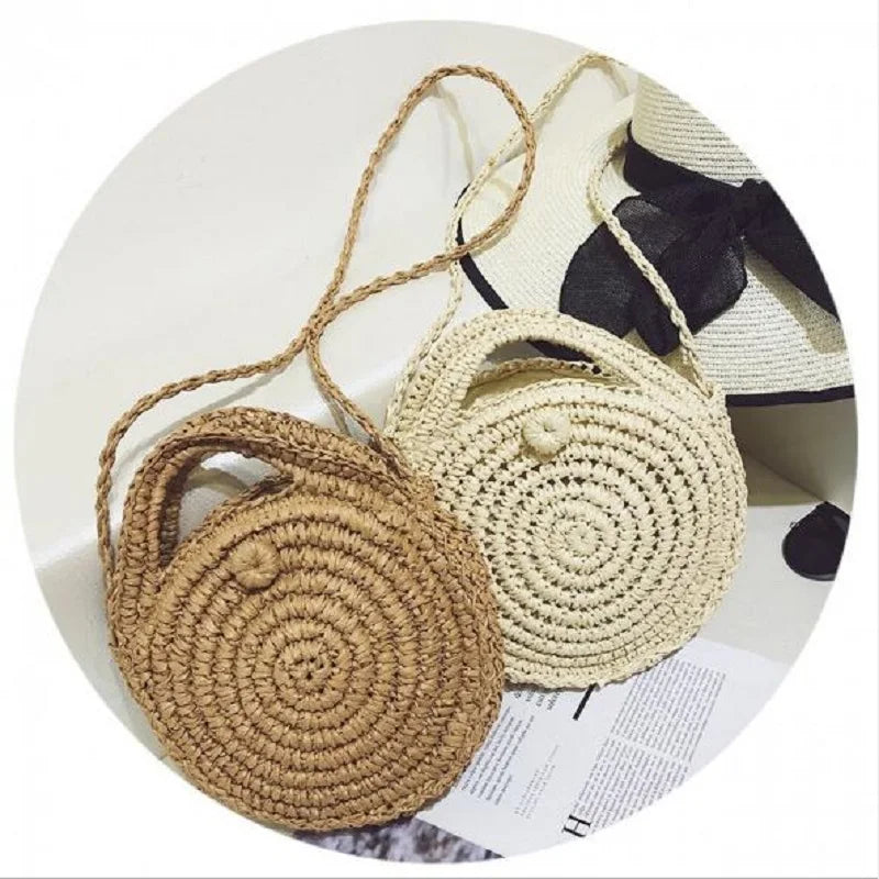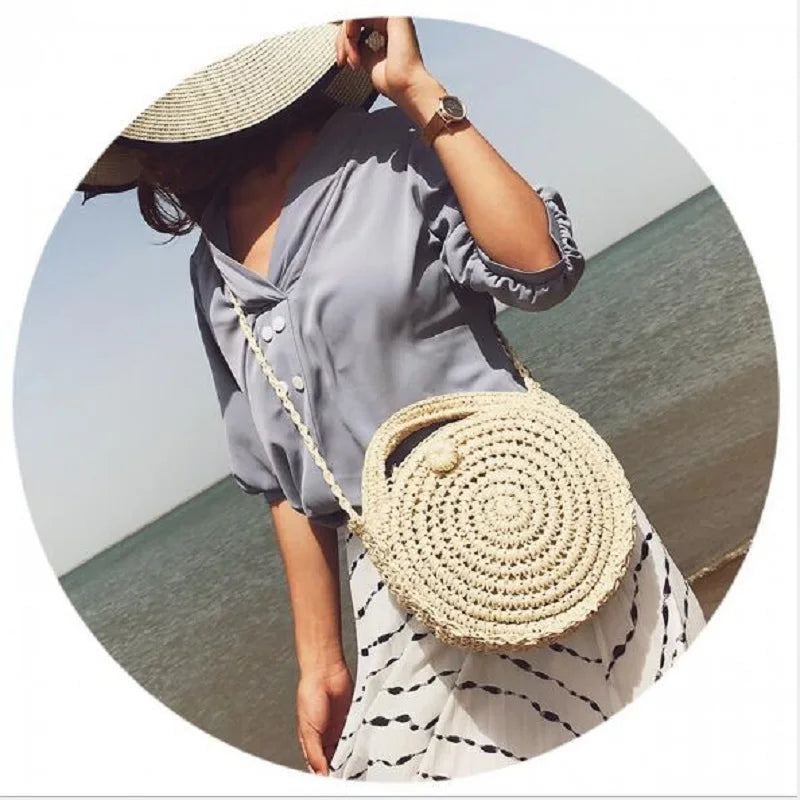 Round Straw Beach Bag Summer Mini Rattan Woven Messenger Bag