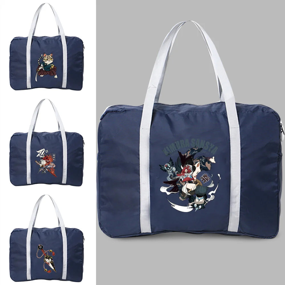 Stay organized on your travels with this waterproof unisex duffle bag featuring a stylish samurai print. The bag is foldable for easy storage and portability.