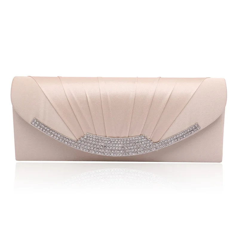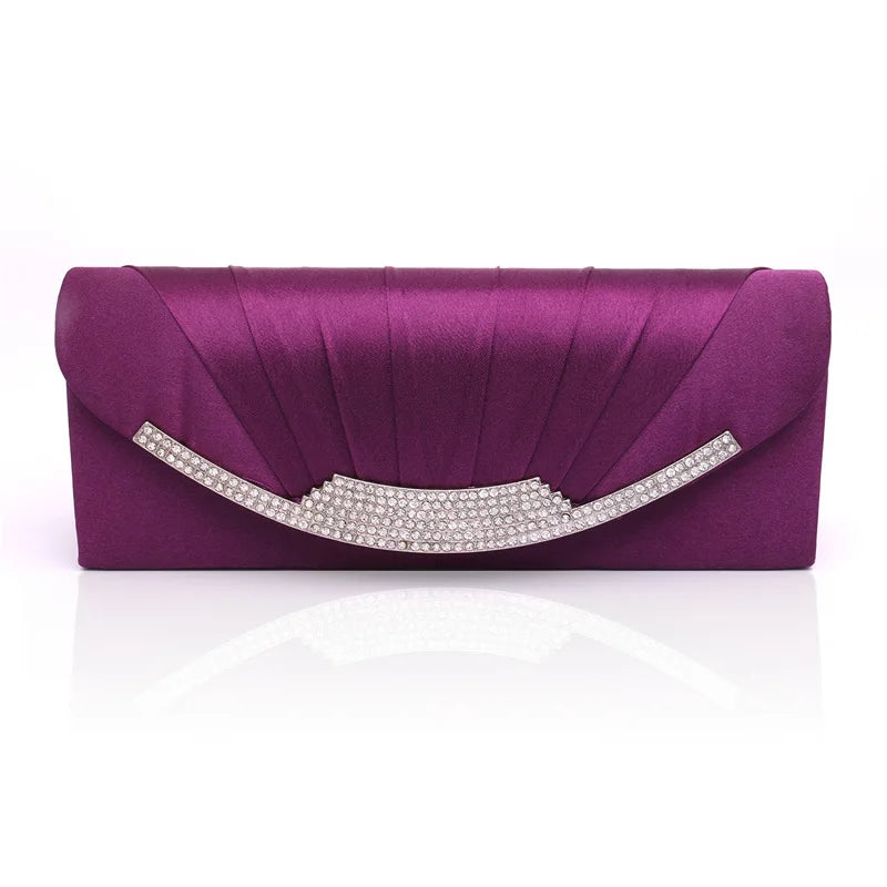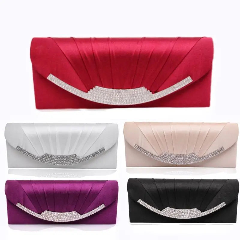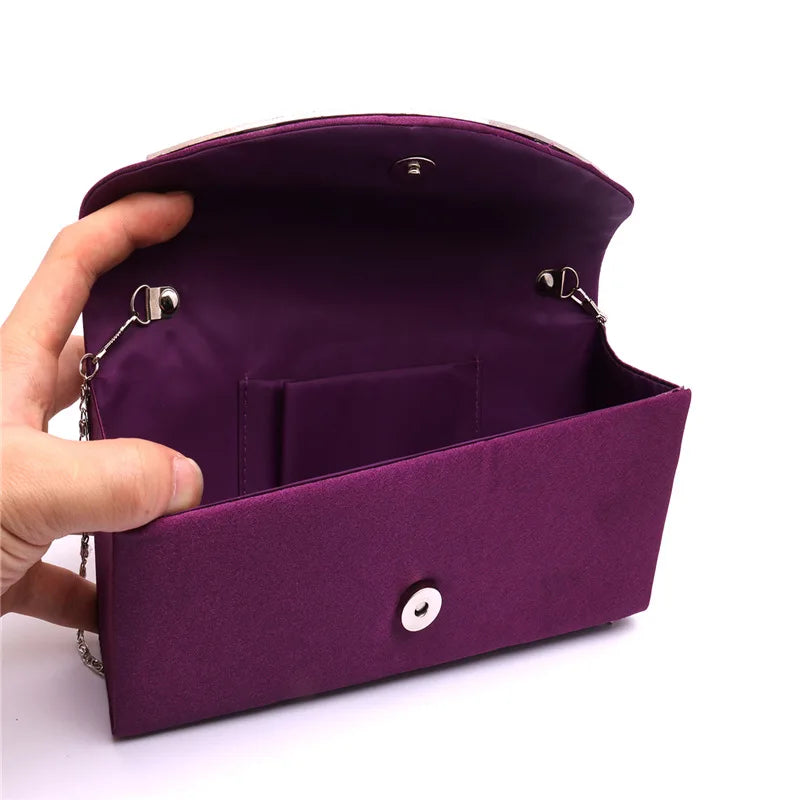 This elegant satin clutch bag is perfect for weddings, parties, and banquets. It features a chain shoulder strap and a solid envelope design.