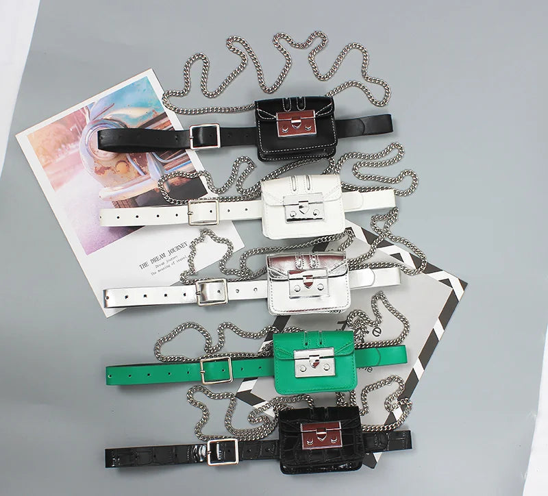 Description:This stylish mini flap waist bag in silver green features a detachable waist belt and chain strap, perfect for carrying your essentials like lipstick.Features: Mini flap waist bag in silver green Made of high-quality PU leather Detachable waist belt and chain strap Ideal for carrying lipstick and small essentials Fashionable...