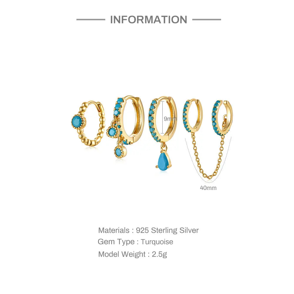 - Features turquoise crown ear stud and star moon pendant drop earrings