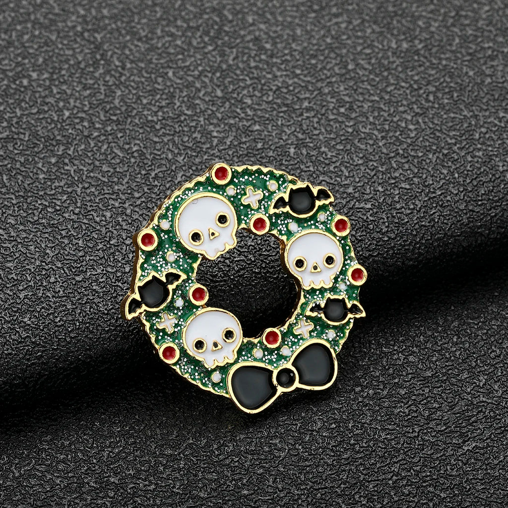 Skeleton Bat Enamel Bag Lapel Pins Brooch Skull Wreath Jewelry