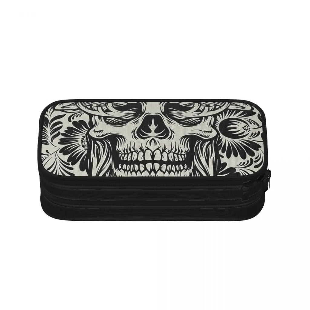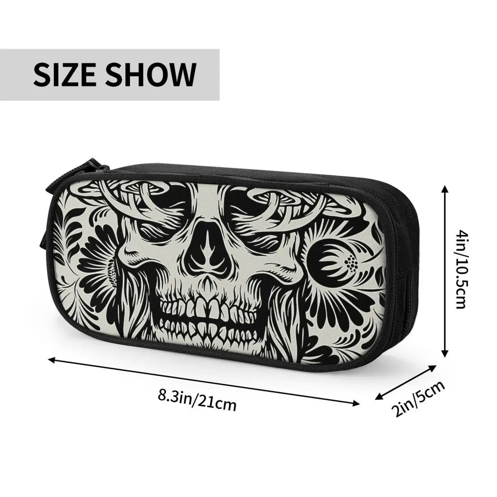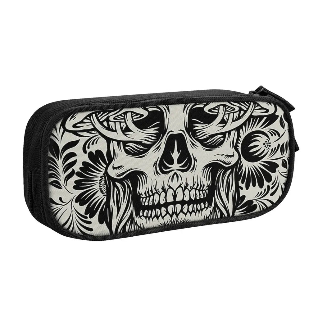 Skull Mushrooms Gray & Goth Pen Box Student School Anime Zipper Pen Bag