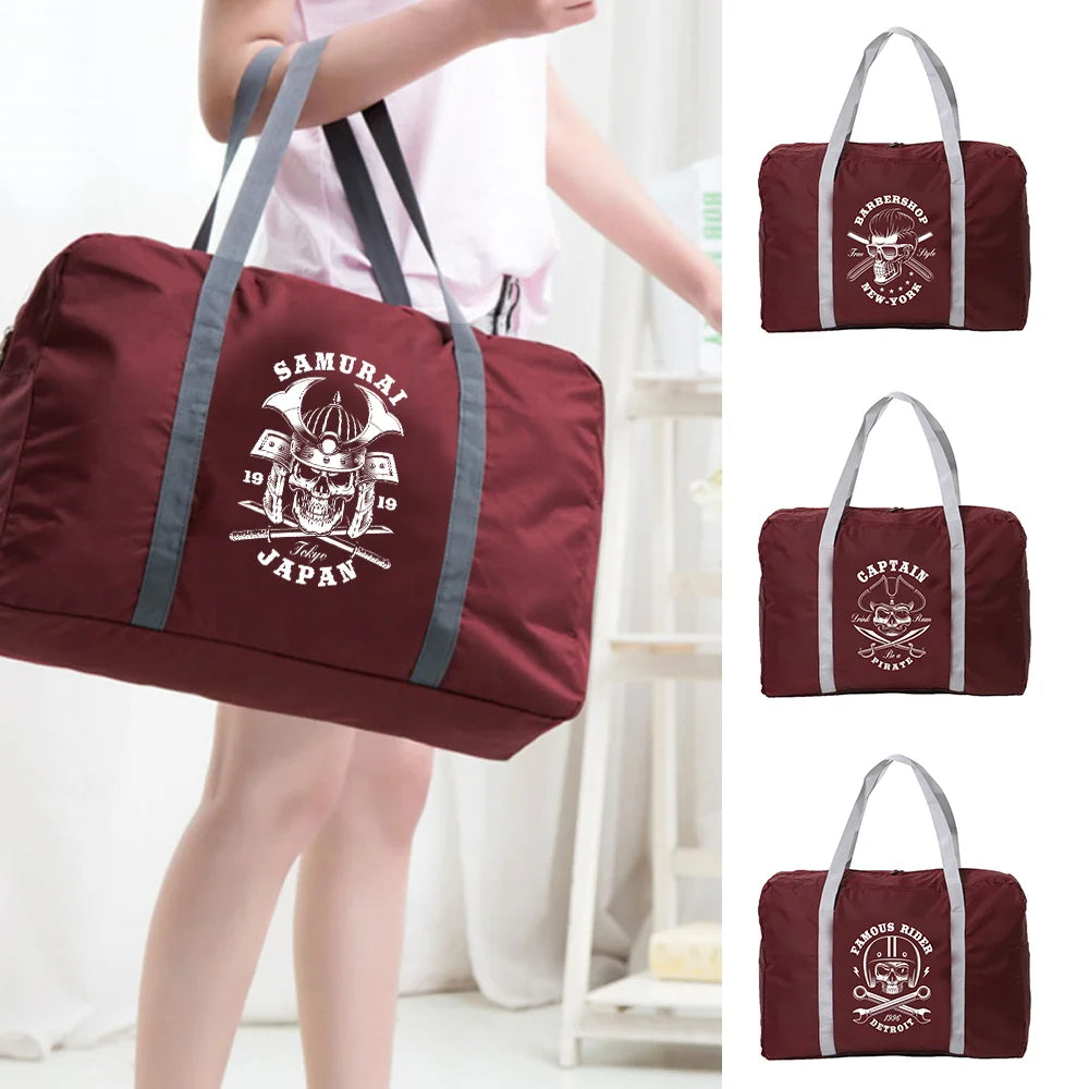 Skull Print Foldable Duffle Bag Large Capacity Organizer