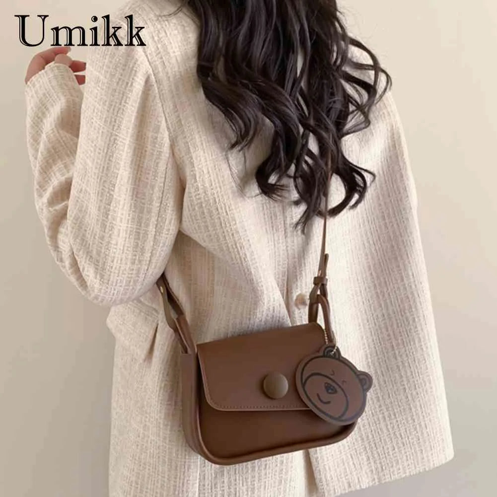 This small crossbody tote bag is made of PU leather, perfect for casual wear. It features a cute bear pendant and is lightweight for everyday use.