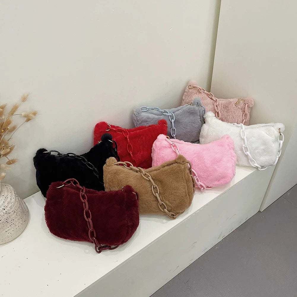 Small Ladies Plush Shoulder Bag with Zipper