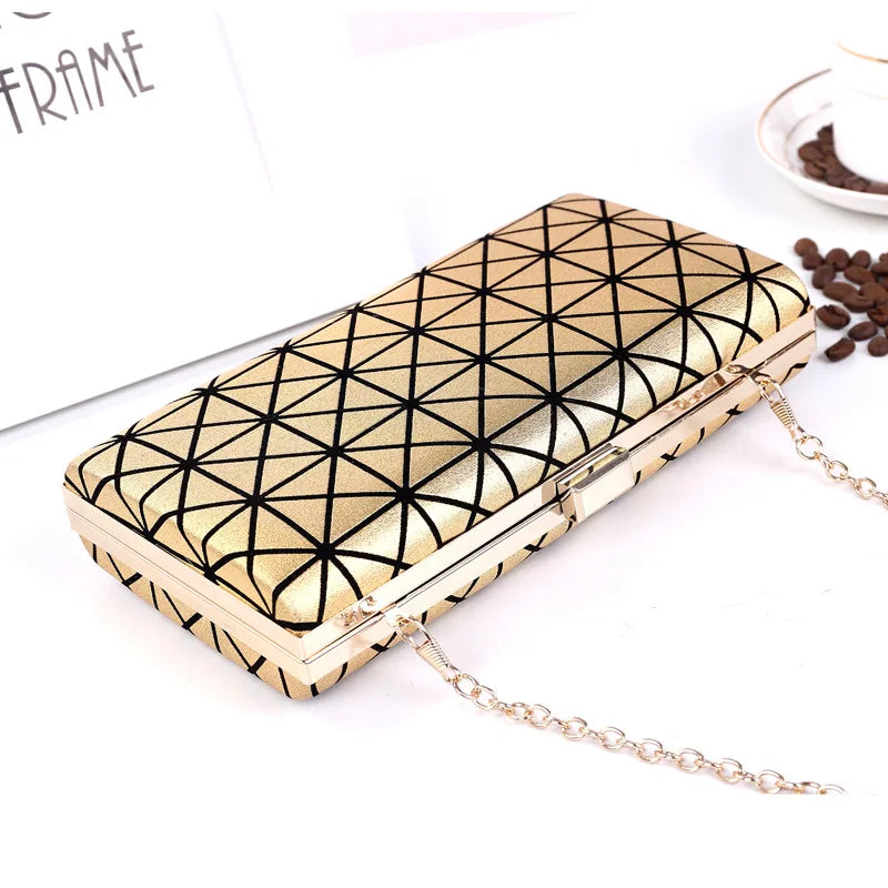 Elegant and stylish small evening bag with rhombic chain design. Perfect for special occasions.
