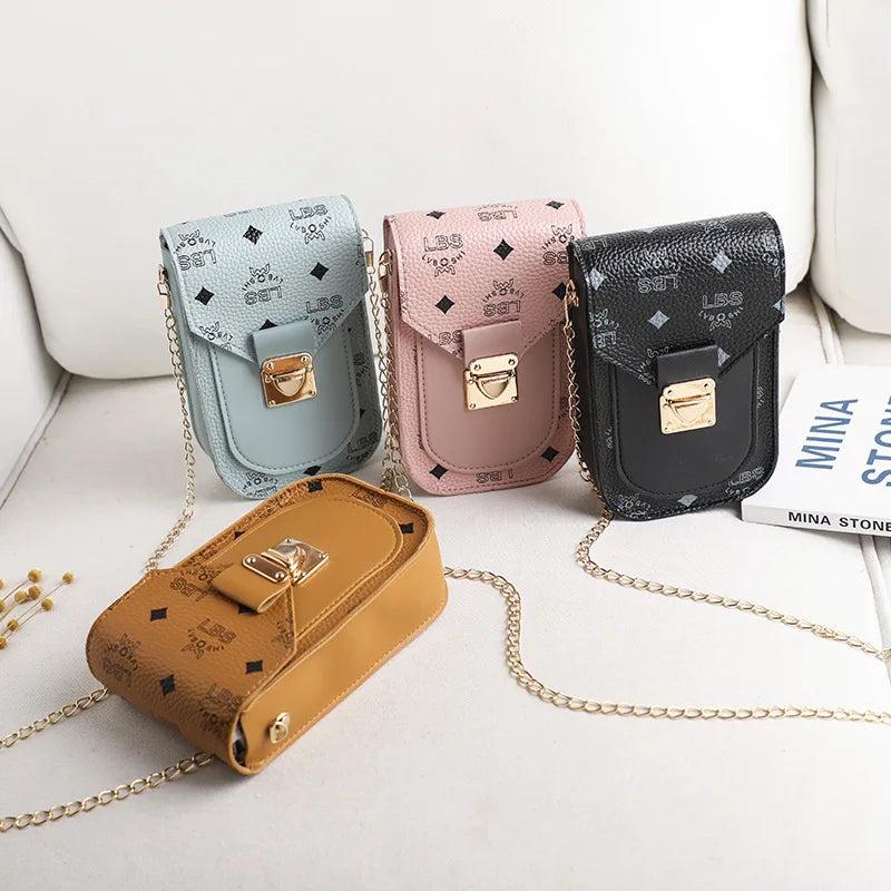Elegant and compact, this female bag features a chain lock design, perfect for carrying your essentials like mobile phone and more.