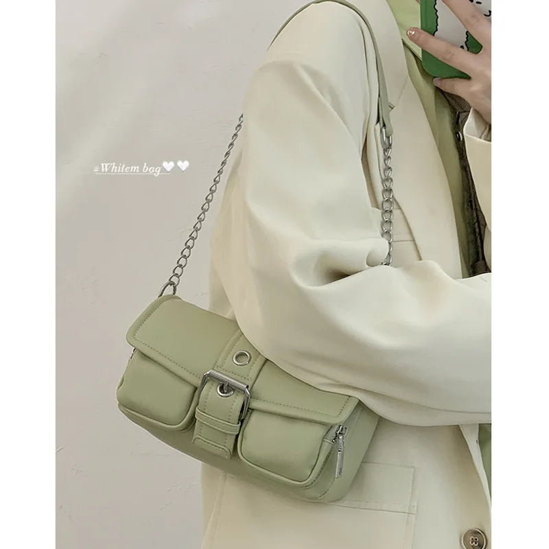 Elevate your style with this high underarm bag perfect for summer. Features a retro chain for a timeless look.