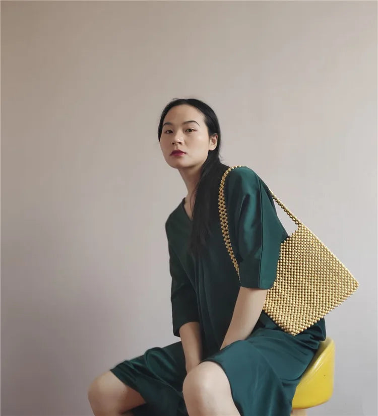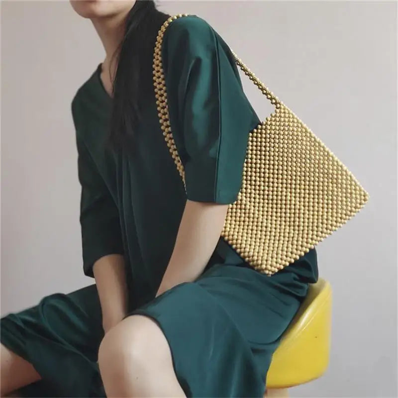Small Wood Braided Bead Bag - 24x23CM
