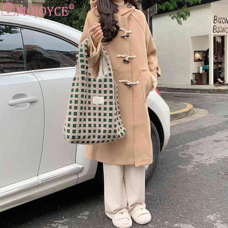 Stay cozy and stylish with this plush shoulder bag made from soft fleece with a waffle plaid design. Perfect for casual outings, street style, travel, and carrying books.